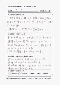 初めての施術から日を追うごとに楽になり、腰痛の起こる頻度も少なくなりました。
