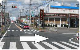 ③ビッグエスの前を過ぎ、50mほど直進します。
