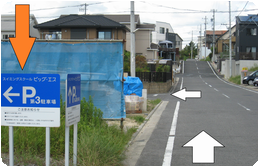 『ビッグエス第3駐車場』を過ぎ、すぐ左折。