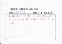 風邪をひいて、高熱と咳とのどの痛みがひどかった時に施術をしてもらったら、身体のだるさが軽くなり、その日すごくぐっすり眠れてスッキリしました。